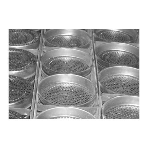 面盒(油炸盒),用于方便面塊的油炸,濾油工作。作為食品材質(zhì),面盒的材質(zhì)要選擇304.310.316等材質(zhì)。面盒,油炸盒主要用在方便面生產(chǎn)線里油炸面條用,促使方便面成型,材質(zhì)主要是304,形狀有圓形和方形,表面有一個(gè)一個(gè)的小孔組成,它根據(jù)方便面設(shè)備的大小分寬度。 1、炸面盒 材料選用SUS430、BA板、無毒、耐熱、不變形、表面光滑易脫面;高密度開孔、濾油快、可降低油耗。特別建議(1)選擇六角形低孔,可大限度提高開孔率。(2)選擇“0”形低孔,盡可能減少低孔的結(jié)膜。(3)碗、桶、杯、盒側(cè)壁開孔增強(qiáng)透油性,杜絕夾生面! 2、風(fēng)干盒(蒸煮盒) 材料選用SUS304B板防銹抗蝕。特別建設(shè)(1)采用篩網(wǎng)盒低,通風(fēng)好,干燥快,面塊較易脫離。(2)底部加裝脫盒裝置,徹底解決粘盒問題。 |